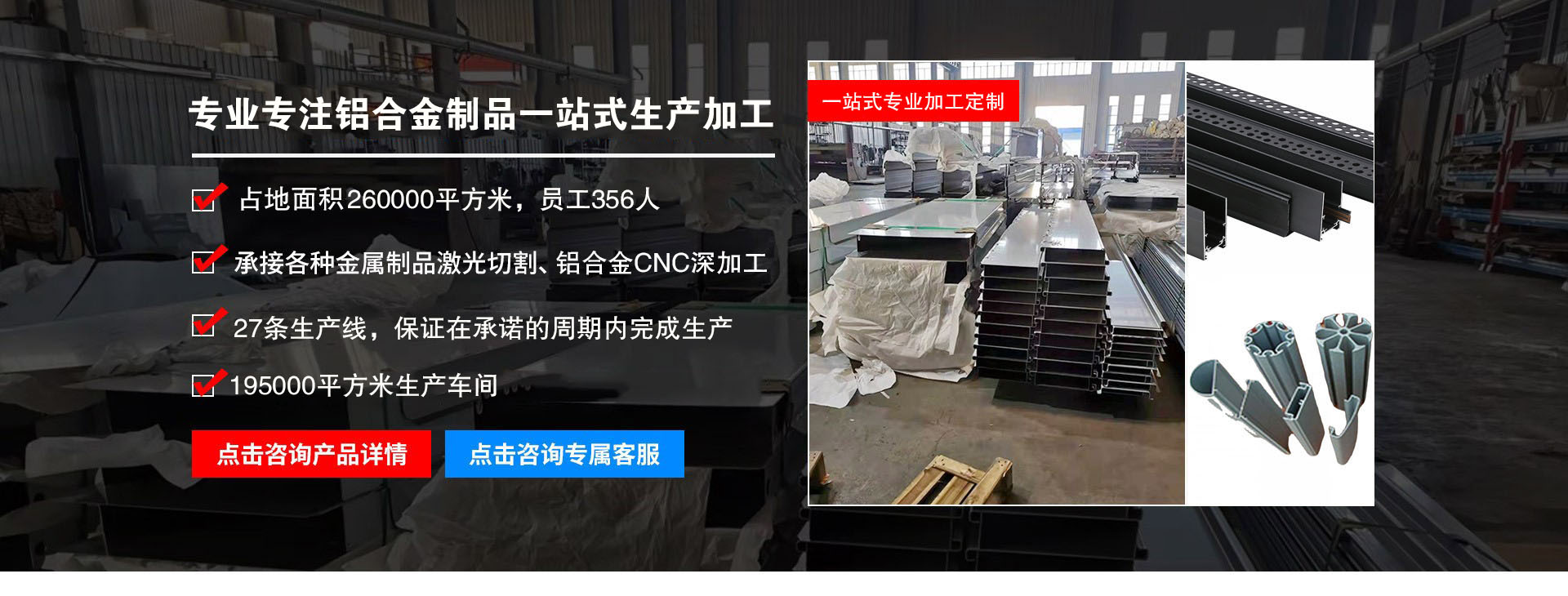 現(xiàn)擁有當(dāng)今先進鋁加工生產(chǎn)設(shè)備配套齊全,其中: 擠壓車間機臺:4000 噸機 3000 噸機各 1 臺,1000 噸 機 1200 噸機 800 噸機各 2 臺,600 噸機 7 臺。模具生 產(chǎn) 2 個車間,熔鑄生產(chǎn)線 5 條爐,氧化生產(chǎn)線. 電泳生 產(chǎn)線.噴涂生產(chǎn)線及CNC深加工加工車間。意聯(lián)金屬制品有限公司不但擁 有先進的設(shè)備和科學(xué)的技術(shù),而且擁有一批優(yōu)秀的企業(yè)精英,我們不斷創(chuàng)新,不懈追求更完美的產(chǎn)品,依靠先進的設(shè)備和科學(xué)的現(xiàn)代化管理,我司的產(chǎn)品暢銷全國各地和出口美國.加拿大.澳大利亞. 中國香港地區(qū). 中國澳門地區(qū)等國家和地區(qū)。